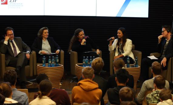 Als „dritte industrielle Revolution“ bezeichnete Christian Schleicher, Abteilungsleiter Politische Bildungsforen Nord, die Digitalisierung im Rahmen seiner Begrüßung zur Podiumsdiskussion „Die Person zählt: Was Schülerinnen und Schüler angesichts des digitalen Kulturwandels lernen müssen“. Gut 200 Schülerinnen und Schüler des benachbarten Canisius-Kollegs, einige Lehrerinnen und Lehrer sowie Eltern waren seiner Einladung zu der Veranstaltung, die in Zusammenarbeit mit dem Zentrum für Ignatianische Pädagogik ausgerichtet wurde, gefolgt.