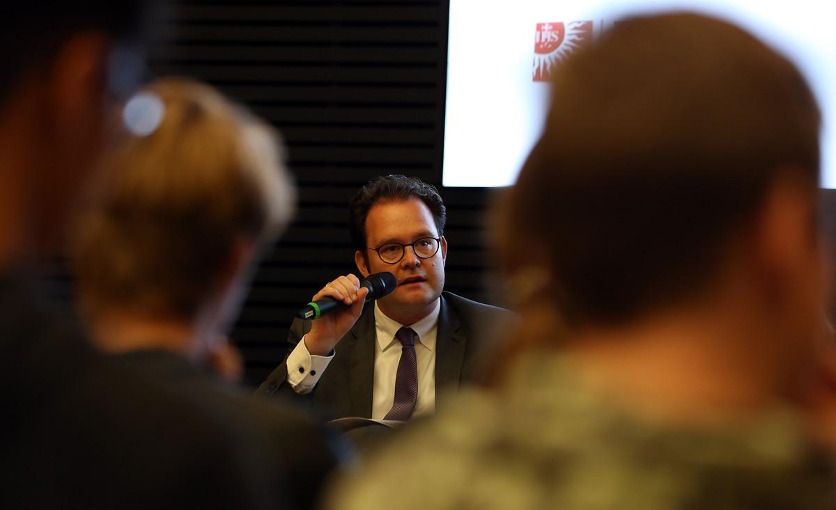 Die Schülerinnen und Schüler des Canisius-Kollegs sprachen in der anschließenden Fragerunde so spannende Themen wie Fake News, Schule und Bildung in der digitalen Welt sowie Wertevermittlung und Charakterbildung an.