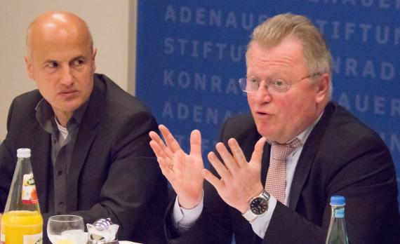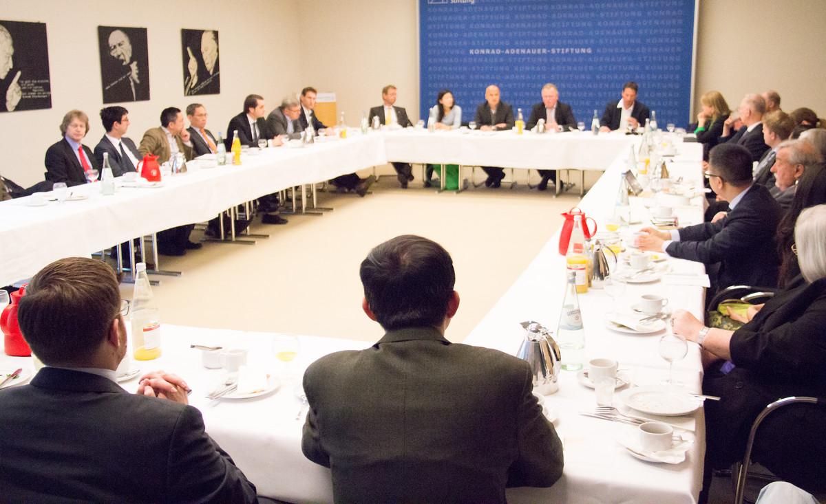 Ohne Frage habe China eine Menge Probleme, so Sandschneider. Das Land sei „hoch instabil und trotzdem stabil“. Steigende Arbeitslosigkeit, wachsende soziale Ungleichheit oder weit verbreitete Gesundheitsprobleme der Bevölkerung durch Umweltzerstörung seien nur drei von zahlreichen Herausforderungen, von denen die Regierung weiß, dass sie sie in den Griff bekommen muss. Das sogenannte „magische Viereck“ der chinesischen Strategie sei aber völlig intakt: Souveränität, innenpolitische Stabilität, Fortsetzung des Wachstums und wachsender globaler Einfluss. Anders lautende Gerüchte, insbesondere die wirtschaftliche Entwicklung betreffend, teilt Sandschneider nicht. „Es droht keine Rezession und keine Schubumkehr.“