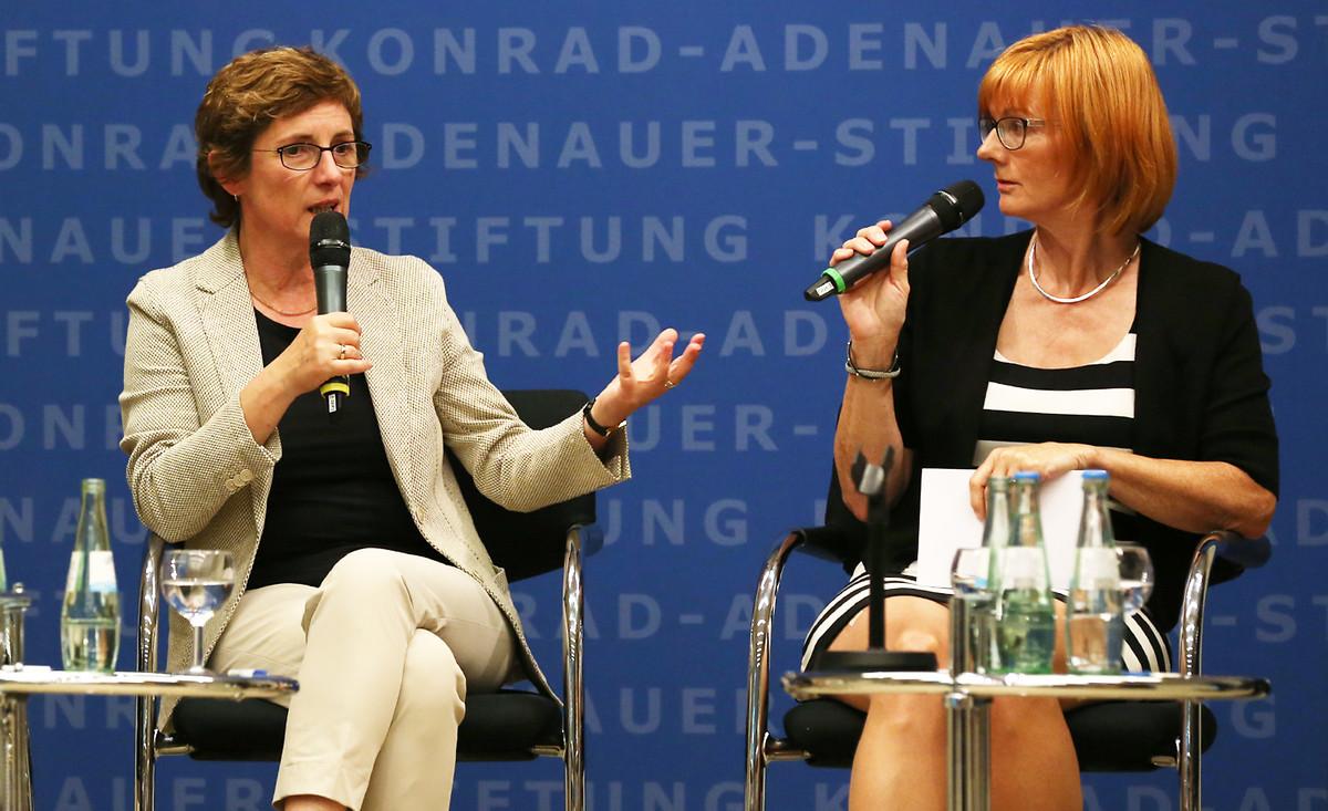 Die Entwicklung der Mitgliederzahlen der großen Volksparteien CDU und SPD ist seit Jahren im Abwärtstrend. Im gesamten Parteienspektrum konnten lediglich Bündnis 90/ Die Grünen in den letzten Jahren Mitglieder hinzugewinnen. Wieso wollen sich immer weniger Menschen politisch engagieren? Britta Haßelmann sieht den Grund hierfür in einem grundlegenden Verständigungsproblem. Die Politik tue sich immer noch schwer damit, gerade junge Menschen anzusprechen. Genau die Menschen, die sich von der Politik abwenden, müsse man jedoch versuchen zu erreichen, z.B. durch eine zeitgemäße Ansprache oder neue Veranstaltungsformate. „Wir müssen die Menschen ermutigen, sich einzumischen“, so die Politikerin. Aber auch an der eigenen Basis sollten die Parteien „für mehr Mitwirkung werben“. Schriftstellerin Thea Dorn vermisst bei den Parteien klare Konturen. Was früher klar abgegrenzte Farbblöcke in schwarz, rot, grün und gelb waren, gleicht heute einem „Aquarellgemälde“, bei denen die Grenzen zwischen den einzelnen Farben verschwimmen. Durch die Verwässerung der Profile und Inhalte wird es immer schwerer, sich einer bestimmten politischen Partei zugehörig zu fühlen. Die inhaltlichen Unterschiede zwischen den einzelnen Parteien deutlicher herauszuheben, dafür ist auch Michael Grosse-Brömer. Den sinkenden Mitgliederzahlen zum Trotz wirbt er dafür, sich politisch zu engagieren und Verantwortung z.B. in der Kommunalpolitik zu übernehmen. „Wer es wirklich will, der bekommt auch seine Chance, in der Politik Verantwortung zu übernehmen“, so der CDU-Politiker.