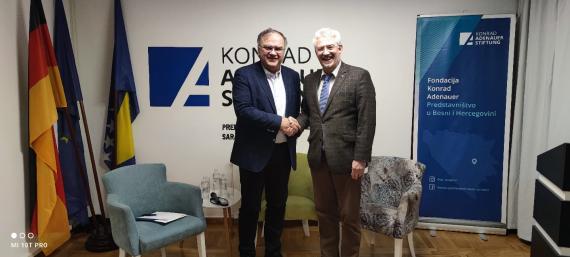 Zvizdić und der Direktor der Konrad-Adenauer-Stiftung in BiH Raabe sprachen über wichtige Schritte für den Fortschritt BiHs in Richtung EU. Medien berichteten über den Austausch.