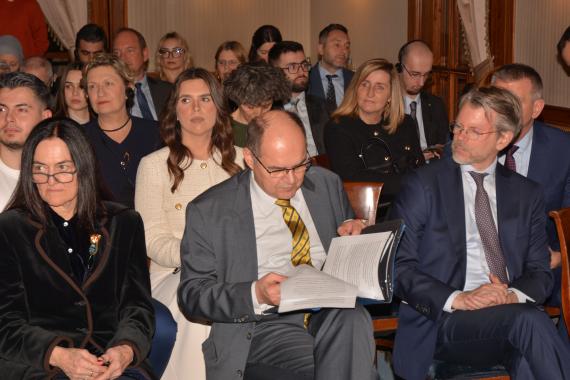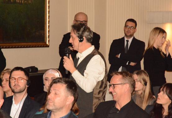 Der Hohe Repräsentant sprach und diskutierte mit dem Publikum einen Tag nach dem Urteil des Bundesgerichts von BiH gegen den Präsidenten der Republika Srpska (RS), Milorad Dodik, in dem dieser zu einem Jahr Gefängnis (mit der Möglichkeit, sich durch eine Geldbuße davon zu befreien) und sechs Jahren politischem Betätigungsverbot verurteilt wurde, wegen der Missachtung von Entscheidungen des Hohen Repräsentanten. Dieser hatte 2023 zwei Gesetze der Nationalversammlung der RS aufgehoben, die die Nichtbeachtung von Entscheidungen des Verfassungsgerichts von BiH und des Hohen Repräsentanten zum Gegenstand hatten. Dodik hatte die Gesetze dennoch im Amtsblatt der RS promulgiert. Der Staat BiH ist in zwei Entitäten (Teilrepubliken) gegliedert: die RS und die Föderation BiH. Während in der Föderation hauptsächlich muslimische Bosniaken und katholische Kroaten leben, wohnen in der RS ganz überwiegend orthodoxe Serben.