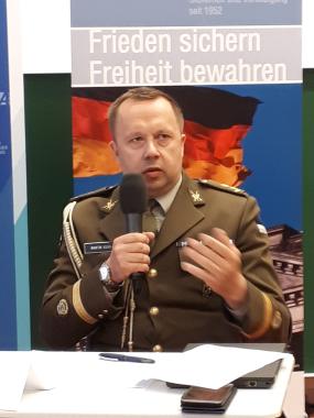 Oberstleutnant i.G. Kukk kam 2018 nach Deutschland und dachte, jetzt über militärische Konzepte reden zu können. Dann aber ging es allein um Politik. Was solle das Ziel einer europäischen Armee eigentlich sein? Darauf gebe es keine Antwort, letztlich handele es sich um eine unkonkrete Vision. Sein Land Estland ist ein Frontstaat, ihn schütze man nicht durch Visionen, sondern durch die verschiedenen Verstärkungskonzepte, u.a. durch die permanente Stationierung realer Truppen. Dass britische Einheiten in Estland seien, sei ausgesprochen begrüßenswert, zumal Großbritannien im Ernstfall über Nuklearwaffen verfüge. Estland verfüge nur über 25000 Soldaten, die im Ernstfall für eine Verteidigung gegen etwaige russische Attacken nicht ausreichten. Eine europäische Armee gebe es in seiner Einschätzung auch in dreißig Jahren noch nicht. Jedoch gebe es zahlreiche Vorteile durch Kooperation, die jetzt bereits wichtig seien, etwa gemeinsame Rüstungsprojekte oder die Bündelung von militärischen Fähigkeiten auf bestimmten Gebieten.