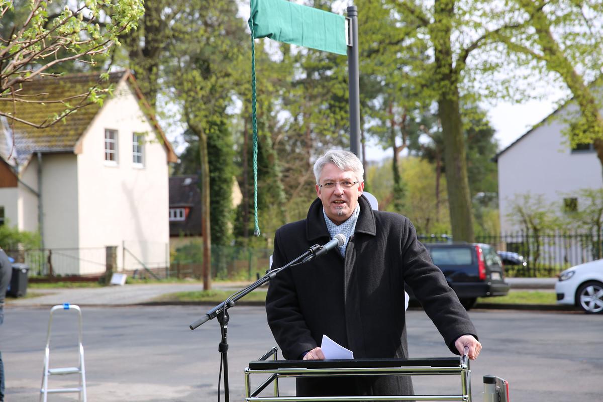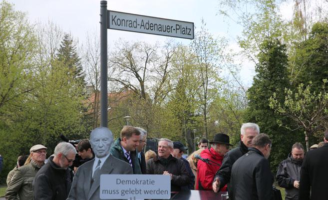 Potsdams Oberbürgermeister Jann Jakobs, der Landesvorsitzende der CDU Brandenburg, Ingo Senftleben, und der Landesbeauftragte der Konrad-Adenauer-Stiftung, Stephan Raabe, würdigten das Leben und Wirken des früheren Bundeskanzlers der Bundesrepublik Deutschland. Mit der Platzbenennung wird an einen herausragenden Politiker insbesondere der deutschen Nachkriegszeit erinnert. Darüber hinaus wird Konrad Adenauer vor allem als Verfolgter der nationalsozialistischen Zeit bedacht.