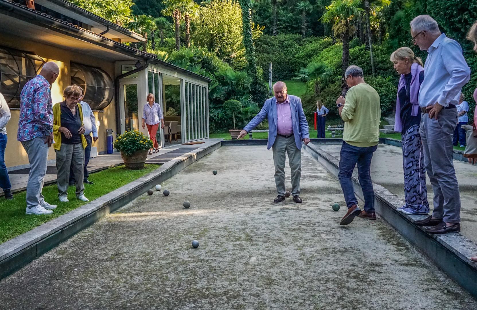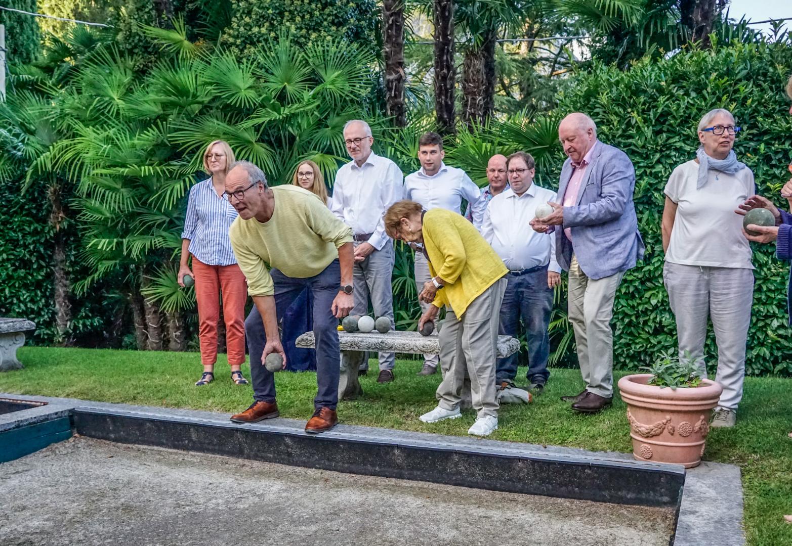 Ein Höhepunkt der Reise war die persönliche Begegnung mit Konrad Adenauer, dem Enkel des ehemaligen Bundeskanzlers. Mit großer Offenheit teilte er Erinnerungen aus dem Familienleben in Rhöndorf, Bonn und Cadenabbia. Seine Anekdoten und Einblicke gaben den historischen Themen eine persönliche Note und machten die Geschichte lebendig. Besonders wertvoll waren die Gespräche mit ihm, die sich oft auch in den Pausen und bei den gemeinsamen Mahlzeiten ergaben. Beim Spaziergang durch den Park, vorbei an neu konzipierten Stelen, die Konrad Adenauer als Natur- und Gartenliebhaber, Boccia-Spieler und Regierungschef im „Ersatzkanzleramt“ Villa La Collina multimedial in Erinnerung rufen, wurde spürbar, wie sehr dieser Ort ihm zur Erholung und politischen Konzentration diente. Ein Boccia-Turnier auf der historischen Bahn, einer von Adenauers Lieblingsbeschäftigungen, sorgte für heitere Stimmung und stärkte den Zusammenhalt der Gruppe.