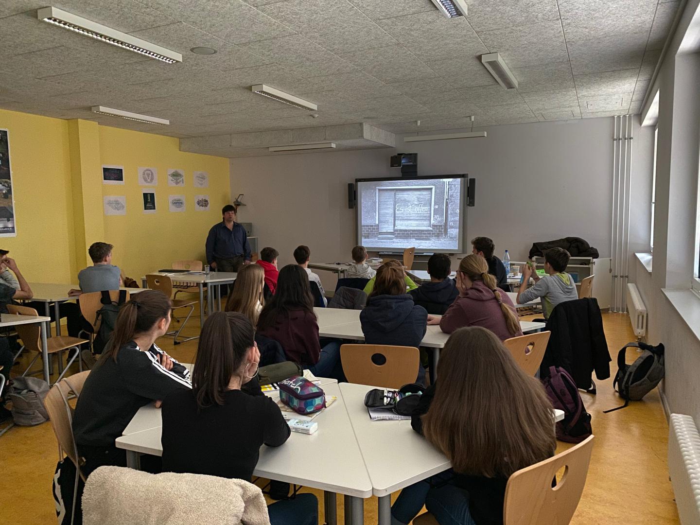 Anhand von Fotos aus dem Bildband von Dietmar Riemann: Schöne Grüße aus der DDR. Fotografien 1975–1989, für die Roman Grafe Begleittexte verfasst hat, sprach er in dieser Themeneinheit mit den Schülern über die Bilder und das Leben in der DDR sowie die eigene Kenntnis davon durch Verwandte, Filme, Bücher. Das brachte ein Schüler schön auf den Punkt: „Man weiß es, obwohl man es nicht selber erfahren hat“.