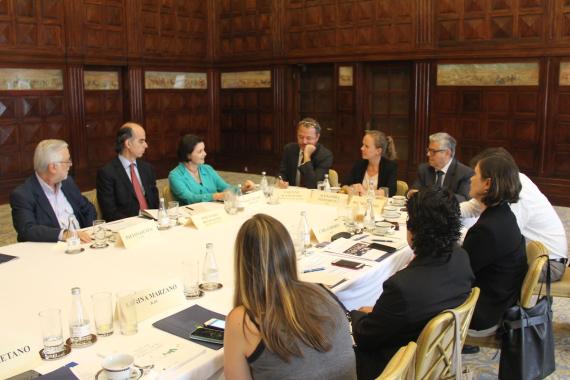 In seiner Keynote ging Dr. Roberto Fendt, Geschäftsführer des chinesisch-brasilianischen Wirtschaftsrats, auf die Entwicklung und strukturellen Ursachen der aktuellen Wirtschaftskrise ein, wobei er die Schlüsselfaktoren gestiegene Staatsausgaben, eine Überlastung des Rentensystems und den informellen Sektor ausmachte. In der Diskussion um Brasiliens Wege aus der Wirtschaftskrise herrschte Einigkeit, dass eine Begrenzung der Staatsausgaben, die momentan in Form einer Verfassungsänderung im brasilianischen Parlament diskutiert wird, einen Schritt in die richtige Richtung darstellt. Die Beiratsmitglieder verwiesen auch darauf, dass in einem derart ungleichen Land wie Brasilien eine Reform des Steuersystems und wirtschaftspolitische Reformen, die die internationale Wettbewerbsfähigkeit brasilianischer Güter steigern, einen wichtigen Beitrag zu mehr Chancengerechtigkeit leisten können.