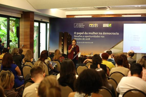 Einen weiteren Schwerpunkt des Seminars bildete die geringe politische Teilhabe von Frauen in Brasiliens politischem System. In einer repräsentativen Demokratie ist die stärkere politische Partizipation von Frauen jedoch entscheidend für den gesellschaftlichen Willensbildungsprozess. Aus diesem Grund trainierten die Frauen in konkreten Übungssituationen ihre rhetorischen Fertigkeiten und Argumentationsstrategien.
