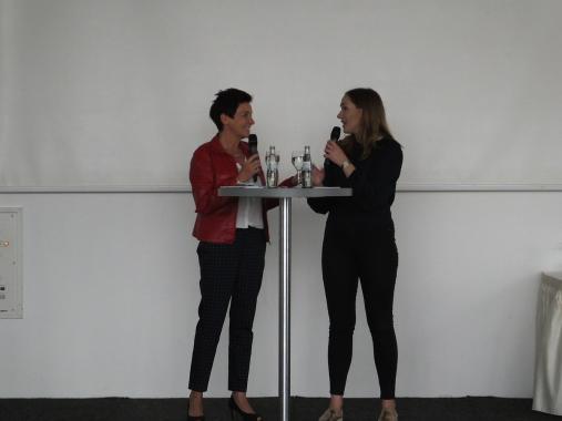 Es folgte ein Gespräch mit Theresa Hein, Finalistin von „Germany´s Next Bundeskanzler/in“, einem Wettbewerb des Verbandes „Die Jungen Unternehmer“, bei dem die Stimme der jungen Generation gesucht wurde. Sie erklärte den Schülerinnen und Schülern, wie der Wettbewerb ablief und welche Aufgaben sie zu bewältigen hatte. „Mehr Werte, weniger Konformität“, nannte Hein als zentrale Aspekte ihrer Vision für die deutsche Politik. Auch seien Transparenz und Vertrauen unerlässlich für eine zukunftsorientierte und stabile Politik. Sie betonte besonders die Bedeutung des politischen Nachwuchses: „Deutschland braucht junge, unverbrauchte Ideen.“ Auf die Frage der Moderatorin, was ihre Motivation für die Teilnahme an dem Wettbewerb „Germany´s Next Bundeskanzler/in“ gewesen sei, erklärte Theresa Hein: „Ich habe den Wettbewerb als Chance gesehen, aus den politischen Stereotypen auszubrechen.“ In der nachfolgenden Diskussion stellten die Jugendlichen angeregt Fragen.