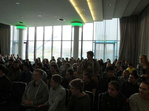 Die Schülerinnen und Schüler konnten sich mit dem Leitthema „Demokratie und umzu“ intensiv in den vier anschließenden Workshops beschäftigen: „Populismus als Korrektiv der Demokratie?“ mit Prof. Dr. Thorsten Müller (Fachhochschule des Bundes für öffentliche Verwaltung Nordrhein-Westfalen), „Extremismus als Feind der Demokratie?“ mit Dr. Rudolf van Hüllen (Politikwissenschaftler und Dozent), „Soziale Medien als Jungbrunnen der Demokratie?“ mit Prof. Dr. Marianne Kneuer (Universität Hildesheim), und „Direkte Demokratie als Ersatz der repräsentativen Demokratie?“ mit Prof. Dr. Barbara Zehnpfennig (Universität Passau). Hier erarbeiteten die Jugendlichen in Zusammenarbeit mit dem jeweiligen Workshopleiter eine Präsentation für alle Teilnehmer, die im Anschluss an die Workshopphase im Plenum vorgestellt wurde. Dabei zeigten sich die Schülerinnen und Schüler sehr engagiert.
