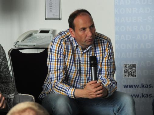 Dr. Ludger Gruber, stellvertretender Hauptabteilungsleiter Politische Bildung der KAS, lobte in seinem Schlusswort die Jugendlichen für Ihr Engagement während der Arbeit in den Workshops und den angeregten Debatten. Auch an die vier Workshopleiter richtete er seinen Dank. Abschließend ermahnte er die Schülerinnen und Schüler dazu, sich ihrer politischen Macht bewusst zu werden: „Nutzen Sie Ihre Partizipationsmacht.“ Er betonte die Notwendigkeit eines respektvollen Umgangs innerhalb der politischen Debatte und besonders mit unterschiedlichen politischen Meinungen: „Eine politische Meinung ist nie neutral. Sie hat immer einen Wert.“