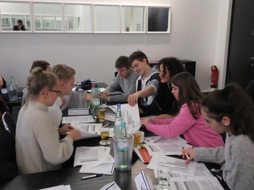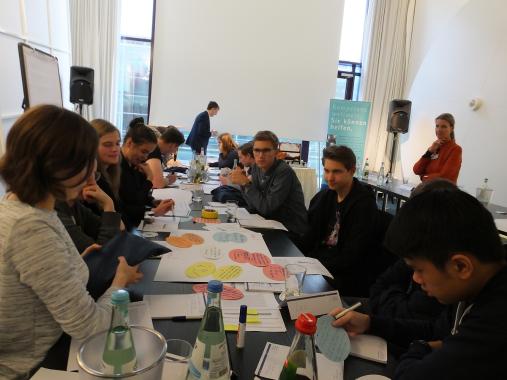 Gemeinsam mit Barbara Zehnpfennig wogen die Jugendlichen im Workshop „Direkte Demokratie als Ersatz der repräsentativen Demokratie?“ Argumente für und gegen ein direktdemokratisches System gegeneinander ab. So stellten sie heraus, dass direktdemokratische Elemente für mehr Nähe zwischen Bürger und Politik sorgen können. Auch könne so der Politikverdrossenheit entgegengewirkt werden. Allerdings sei die direkte Demokratie besonders anfällig für eine Beeinflussung durch aktuelle Stimmungslagen und Proteststimmen. Die Teilnehmer plädierten eher dafür, die repräsentative Demokratie mit direktdemokratischen Elementen zu ergänzen. Letztere sollten erstere aber nicht ersetzen.