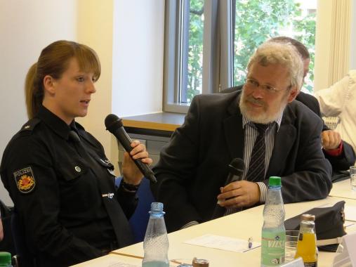 In der anschließenden Podiumsdiskussion berichtete Buggel von ihrem Alltag als Polizistin in Bremen und der zunehmenden Respektlosigkeit und Gewalt. „Schon bei Kontrollen wird die ganze Arbeit in Frage gestellt“, sagte Buggel, „es gehört zum Polizeiberuf dazu.“ So sind Beleidigungen wie „Scheißbulle“ und Flaschenwürfe bei Demonstrationen oder Fußballspielen Teil des Berufs geworden.
