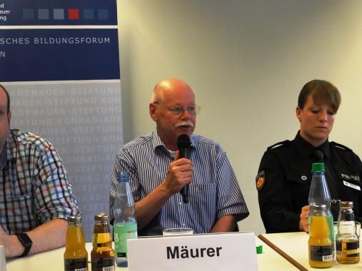Zum Abschluss bedankte sich Ralf Michel bei den Podiumsteilnehmern und der Konrad-Adenauer-Stiftung und betonte die Wichtigkeit, sich mit dem Problem der zunehmenden Respektlosigkeit in der Gesellschaft und gegenüber der Polizei auseinanderzusetzen.