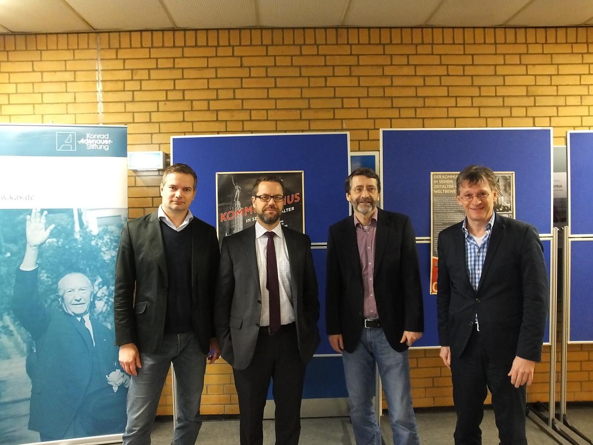 Die Konrad-Adenauer-Stiftung präsentierte am 01. November 2017 anlässlich des 100. Jahrestages der Oktoberrevolution die Ausstellung „Der Kommunismus in seinem Zeitalter“ in der Europaschule Schulzentrum Utbremen. Die Ausstellung des Historikers Gerd Koenen umfasst über 200 zeithistorische Fotos und Dokumente, die auf 25 Schautafeln gezeigt wurden. Dr. Armin Pfahl-Traughber, Professor an der Hochschule des Bundes für öffentliche Verwaltung, führte die Schülerinnen und Schüler durch die Ausstellung.