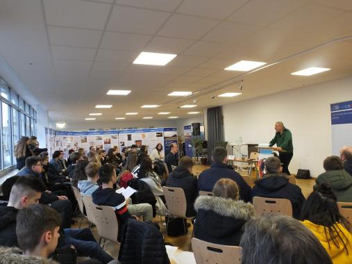 Nach einer kurzen Begrüßung des Schulleiters Herrn Huisgen, betonte Boris Lettau, Tagungsleiter der Konrad-Adenauer-Stiftung, wie wichtig es sei, der jüngeren Generation die Geschichte der DDR nahezubringen und einer Ostalgie entgegen zu wirken. Eine Aufarbeitung der brutalen Methoden der SED-Diktatur und der Mythen müsse intensiviert werden.