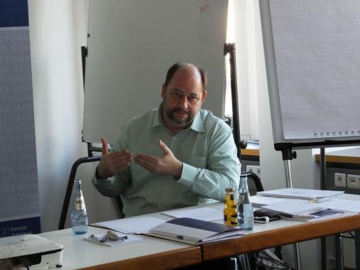 Nach einem gemeinsamen Mittagessen hielt Christopher Beckmann, Wissenschaftlicher Mitarbeiter der KAS, im Anschluss einen Vortrag zur Geschichte, Programmatik und Politik der CDU. Anschließend diskutierte Beckmann mit den Teilnehmerinnen und Teilnehmern in einer Praxisübung die Zukunftsfähigkeit der "CDU als Großstadtpartei". Auf Grundlage von verschiedenen Zeitungsartikeln entstand eine lebhafte Diskussion über führende Köpfe der CDU, die CDU als Volkspartei und das C im Namen der Partei. Zum Abschluss wurden die Wahlen in Baden-Württemberg, Rheinland-Pfalz und Sachsen-Anhalt in die Diskussion miteinbezogen.