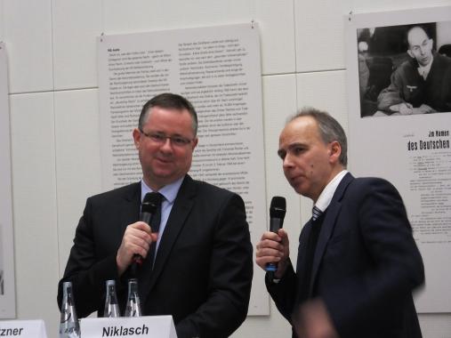 Das anschließende Gespräch mit Kai Niklasch zeigte die oft gegensätzlichen Ansichten der Gesprächspartner. Niklasch stellte den von Steltzner erwähnten Aufschwung in Frage – zwar sänken die Arbeitslosenzahlen, doch die soziale Ungleichheit wachse beständig und schlösse Teile der Bevölkerung aus, die Freiheit der Wirtschaft bringe hier keine Verbesserung. Dies begründete Steltzner mit deren Lähmung durch Gesetzesvorgaben. Sie beschränkten das Wirtschaftswachstum, es brauche „mehr Eigenverantwortung“. Dies setze auch voraus, die steuerliche Umverteilung zurückzufahren, sodass eigene Leistung der zentrale Ansporn werde. Auf internationaler Ebene werde dieser Grundsatz ebenfalls missachtet: Die Einführung des Euros betrachtet Steltzner, anders als Niklasch, ebenso als Fehler und Einschränkung wirtschaftlichen Potenzials wie die Schuldenübernahme in der Eurokrise. Dies mache es umso wichtiger, die „Sorgen der Leute ernst zu nehmen“, um ihnen das Vertrauen in die Funktionsfähigkeit der Sozialen Marktwirtschaft zurückzugeben. Die Teilhabe am Wohlstandswachstum sei das überzeugendste Argument.