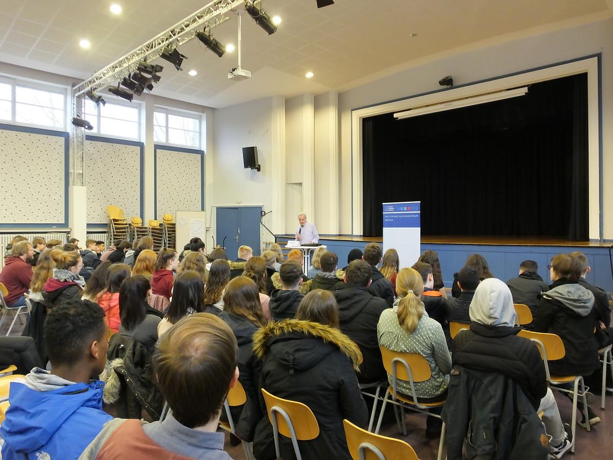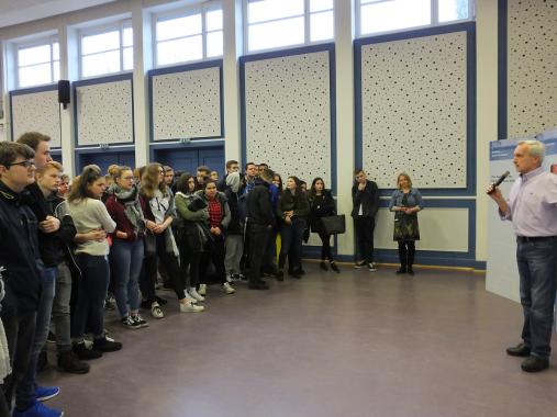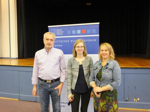 Die Geschichtslehrerin der Oberschule Habenhausen Sabine Blunck begrüßte zu Beginn die Gäste von der KAS. Die Tagungsleiterin Jana Glose stellte daraufhin der Schülergruppe die Arbeit und das Leitbild der KAS vor. Um den Schülerinnen und Schülern die Geschichte der DDR greifbarer zu machen, erzählte Becke im Anschluss, wie es ihm in der DDR erging und wie die Indoktrinierung der SED funktionierte.
