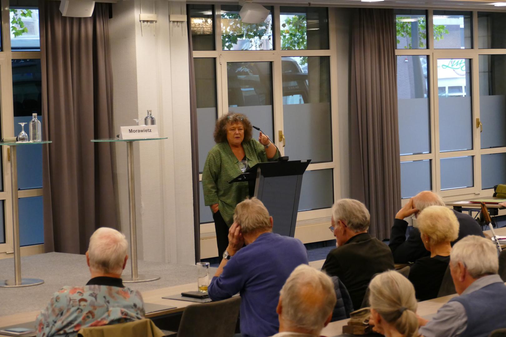 Er übergab an Görner für ihren Vortrag über die Probleme älterer Menschen mit Filialschließungen und der Digitalisierung hielt. Sie sei ein „ausgesprochener Anhänger der Digitalisierung“, wobei sich diese jedoch mehr an den Nutzern orientieren solle. Fehlende Nutzerorientierung führe dazu, dass vor allem ältere Menschen bei der Digitalisierung zurückblieben und das, obwohl sie eigentlich, aufgrund der geringen Ortsgebundenheit der neuen Angebote und der abnehmenden Mobilität im Alter, besonders von ihr profitieren könnten. Automatisierung und Filialschließungen bei Banken würden zudem zum Fehlen von Ansprechpartnern führen und erschwerend käme hinzu, dass Veränderungen und Unterschiede der Benutzeroberflächen von Programmen das (selbstständige) Erlernen enorm verkomplizieren würden. Dies sei der Fall, weil Großunternehmen und Sparkassen in einer Art „Monopolsituation“ stünden, welche die Wahlmöglichkeiten der Kunden einschränke und somit die Orientierung am Privatkundengeschäft an Bedeutung verliere. Der freie Markt könne das Problem nicht lösen. Deshalb seien regulatorische und standardisierende Schritte seitens der Politik notwendig. Dennoch könnten Firmen wie die Sparkasse auch durch gesellschaftlichen Diskurs zu alternativen Schritten, wie dem Angebot mobiler Filialen, gedrängt werden.
