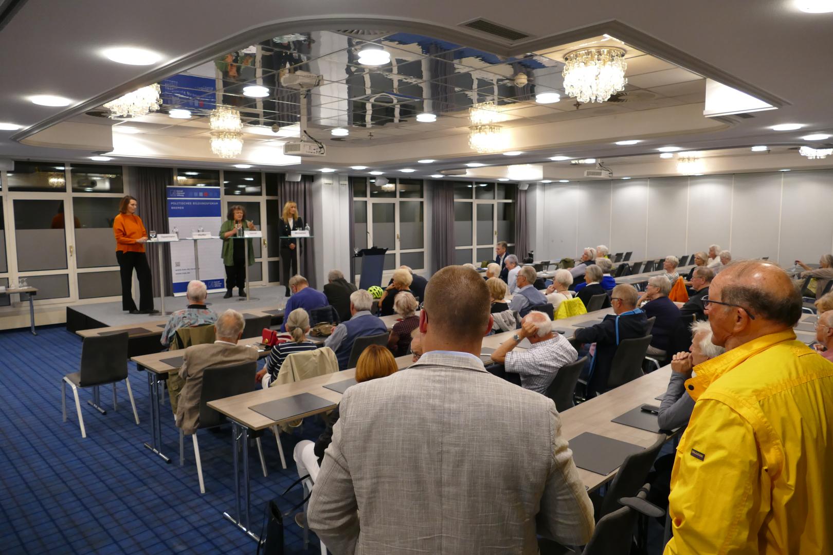 Zum Schluss hatte das Publikum die Möglichkeit, Fragen zu stellen. Auf die Frage hin, ob Hilfsangebote für Ältere durch Jugendliche stärker gefördert werden sollten, antwortete Görner, dass diese bereits vorhanden und besonders effektiv seien. Das Publikum war sichtlich unzufrieden mit der Antwort, woraufhin Morawietz ergänzte, das Problem bestehe nicht primär in der Anzahl der Hilfen, sondern derzeit vor allem in deren ungleichmäßiger Verteilung. Außerdem gebe es zu hohe Hemmschwellen für Ältere, solche Angebote anzunehmen. Es sei zunächst nötig, mehr über die bereits bestehenden Möglichkeiten zu informieren. Altenhof bedankte sich bei allen Beteiligten für die Teilnahme an dieser Veranstaltung und lobte die Debatte als nachvollziehbar und praxisorientiert. Er gab einen Ausblick auf zukünftige Veranstaltungen.