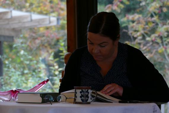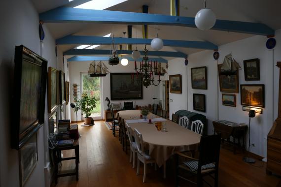 In Wind- und Wetterkleidung ging es von Bremen nach Nartum, wo wir von Irmela von Lenthe und Alinda van der Vooren-Tralau erwartet wurden. Gemütlich bei Kaffee und Kuchen bekamen die Teilnehmer eine Einführung in die Biografie Walter Kempowskis durch Irmela von Lenthe und Alinda van der Vooren-Tralau. Zur Veranschaulichung wurden Bilder von Kempowski, seiner Familie und Filmausschnitte gezeigt.