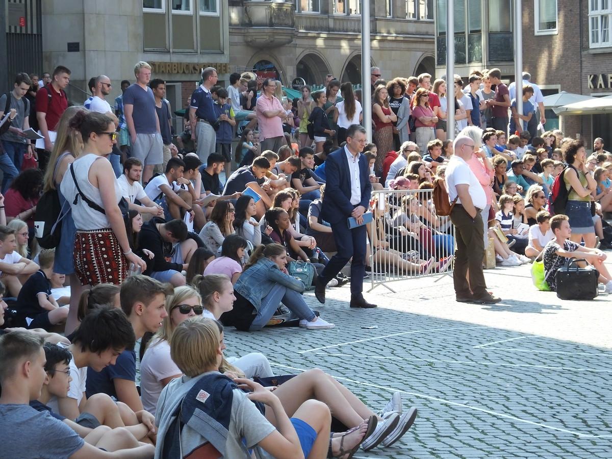 In den Vereinigten Staaten von Amerika, Frankreich, dem Vereinigten Königreich, Ungarn, Polen, Griechenland und Spanien: In vielen Staaten und auch in Deutschland nehmen populistische Kräfte und extremistische Gruppen eine größere politische Rolle ein. Anlässlich dieser Entwicklungen diente die gemeinschaftliche Aktion auf dem Bremer Marktplatz dazu, Aufmerksamkeit auf die grundlegende Bedeutung der Demokratie zu lenken.