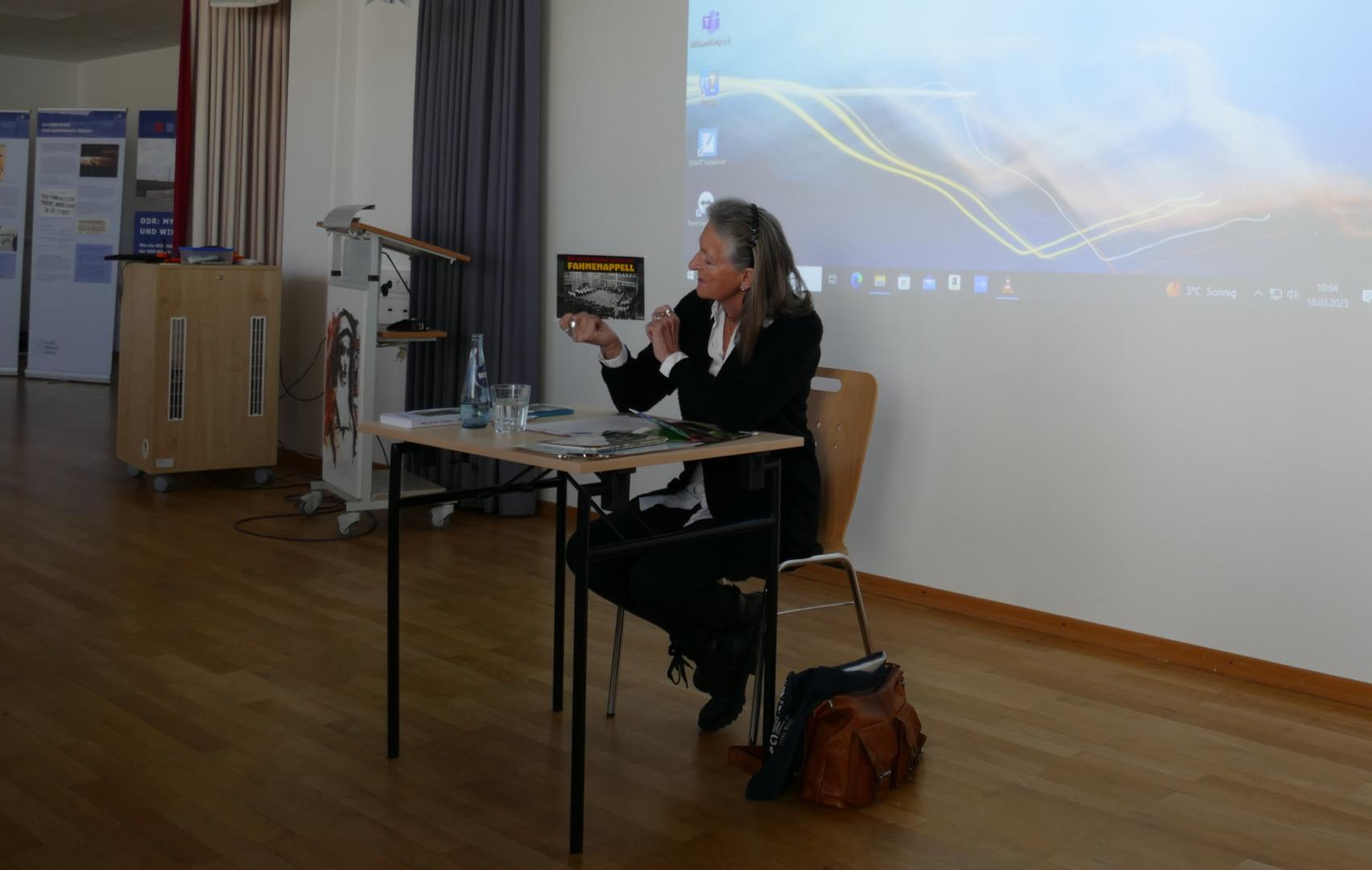 Elke Schlegel berichtete eindrücklich von ihren Erlebnissen in der DDR. Sie wurde 1958 in der thüringischen Stadt Jena geboren und hatte bereits in ihrer Kindheit die ersten Berührungspunkte mit dem SED-Regime. Trotz ihrer halbwegs unbeschwerten Kindheit bekam sie früh zu spüren, was es bedeutete, in der DDR aufzuwachsen. Die Kinder wurden in der Schule vor den anderen Kindern bloßgestellt, wenn sie zum Beispiel westdeutsches Fernsehen sahen anstelle des DDR-Rundfunks. Ähnlich verhielt es sich mit der religiösen Ausbildung der Schülerinnen und Schüler in der DDR, da den Schülern in Bezug auf ihre Religion nicht freie Hand gelassen wurde. Im Kontext der Jugendweihe erzählte Elke Schlegel den Schülern, was ihr während des Festes gesagt wurde: „Sie werden heute in den Kreis der Erwachsenen aufgenommen. Die Welt steht Ihnen offen.“ Schlegel bemerkte jedoch schnell, dass dies nicht auf ihre Kindheit und ihr Leben in der DDR zutraf und keinesfalls der Wahrheit entsprach.