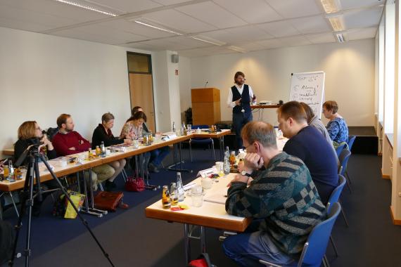 In verschiedenen praktischen Sprach- und Redeübungen konnten die Seminarteilnehmer ihre rhetorischen Fähigkeiten trainieren und verbessern. Außerdem gab es Tipps zu Körperhaltung, Sprache, Gestik und Mimik. Auch der Umgang mit Nervosität sowie Ein- und Ausstiegmöglichkeiten für Vorträge wurden von den Trainern thematisiert und geübt.
