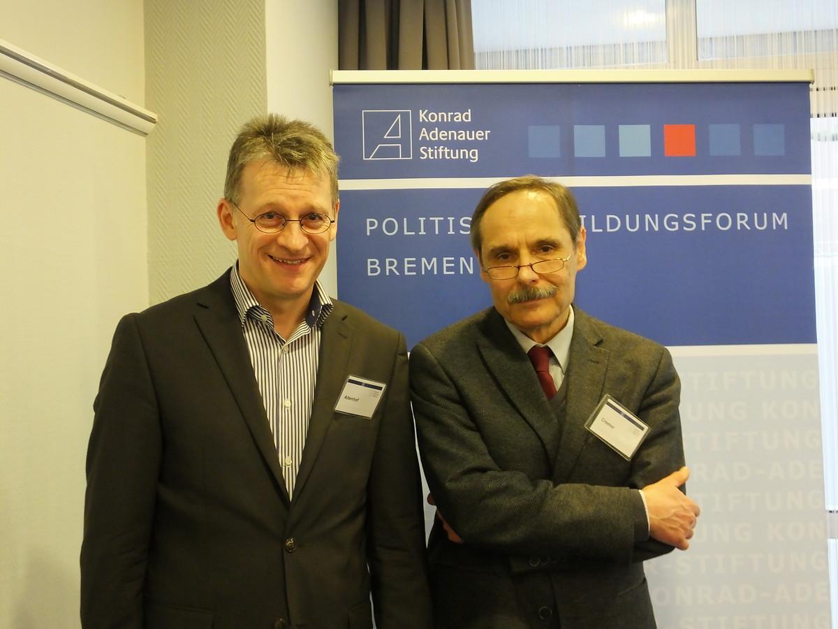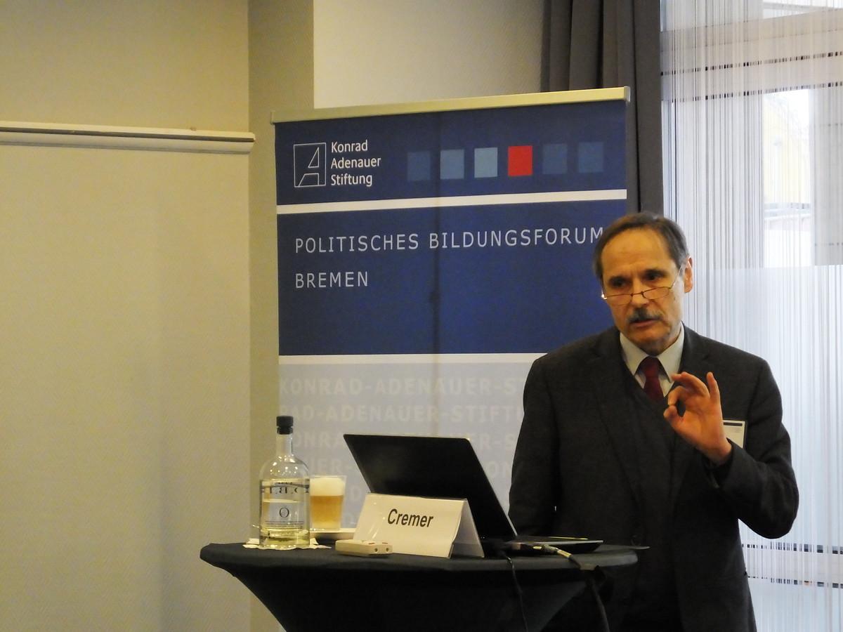 Zum Einstieg in das Thema zeigte Ralf Altenhof, Leiter des Bildungsforums der Konrad-Adenauer-Stiftung (KAS) in Bremen, ein aktuelles Beispiel auf: Anfang Februar 2017 wurde die Zahl der in Armut lebenden älteren Personen auf 5,7 Millionen bemessen, den angeblich höchsten Wert seit Jahren – wobei die Altersarmut in Deutschland tatsächlich zurückgeht.