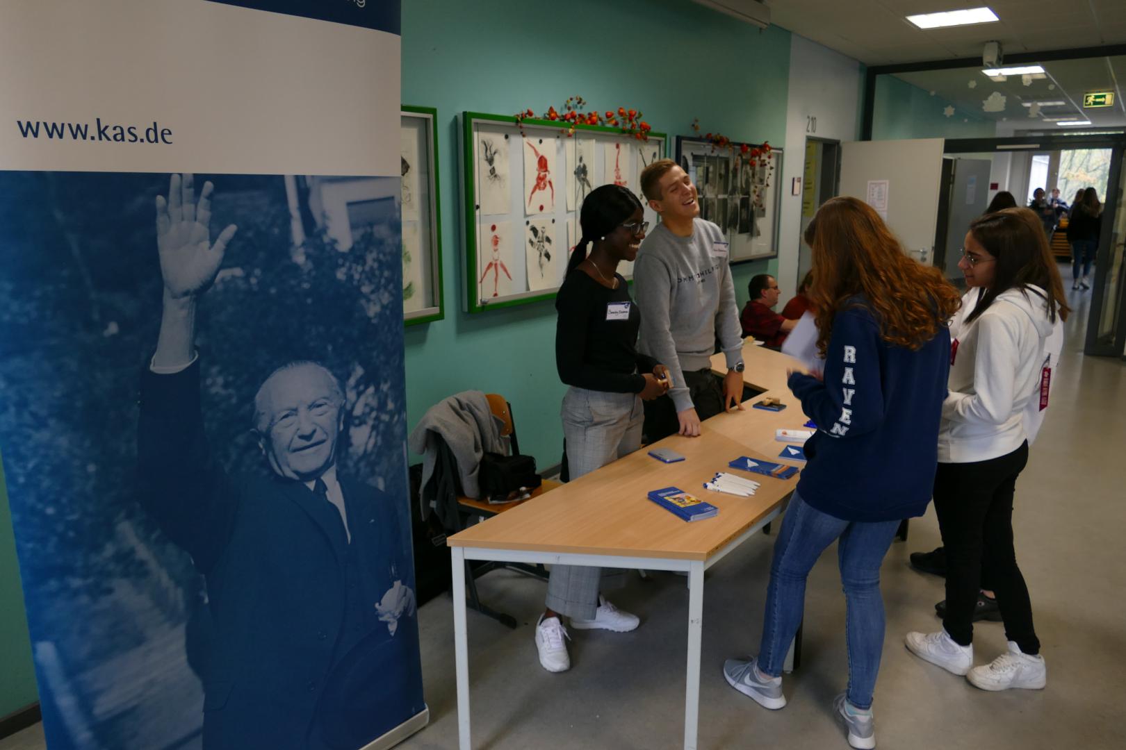 Am 06. November 2019 organisierte das Alexander-von-Humboldt-Gymnasium die erste Zukunftsmesse. Dort konnten sich die Schüler über verschiedene Praktika- und Ausbildungsplätze bei Firmen wie Daimler oder Dachser informieren. Darüber hinaus waren mehrere Stiftungen anwesend, um die Schülerinnen und Schüler über die Möglichkeit eines Stipendiums aufzuklären. Auch die Konrad-Adenauer-Stiftung Bremen war mit einem Messestand vertreten und machte auf die Unterstützung durch die Begabtenförderung aufmerksam. Dazu gehört das JONA-Stipendium, welches auf den beruflichen Einstieg in die Medien vorbereitet, oder das Programm „Senkrechtstarter“, ein Studienpatenschaftsprogramm für Studierende mit Migrationshintergrund. Dabei konnten die Schüler ihre Fragen an den Stipendiaten Marius Kossmann und die FPJ-lerin Beverley Essuman richten.