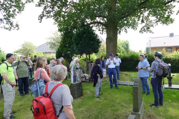 Als erstes besuchten die Gruppe der KAS Bremen den jüdischen Friedhof in Bremerhaven. Seit 1768 wurden dort Menschen begraben, somit zählt der Friedhof zu den ältesten jüdischen Orten in Bremerhaven. Wenn eine jüdische Gemeinde gegründet wird, dann wird als erstes ein Friedhof angelegt, so Ionescu, denn gestorben werde immer… Friedhöfe würden als gut und lebendig empfunden, da es der Ort der ruhenden Verwandten sei, an den man auch gelangen werde. Im Judentum gibt es verschiedene Phasen der Trauer. Als erstes beginnt die “Schiwa”, diese Phase dauert sieben Tage und besteht daraus, dass man gemeinsam sitzt und währenddessen nicht arbeitet. Ionescu berichtete aus seiner eigenen Erfahrung, dass man in der Zeit die Möglichkeit habe, Familienmitgliedern näher zu kommen. Die gesamte Trauerzeit könne bis zu einem Jahr andauern, spätestens dann müsse auch ein Grabstein gesetzt werden. Bevor es weiter zur Chanukkia ging, regte Ionescu an, mit Wasser die Hände dreimal abzuwaschen. Dies sei üblich beim Verlassen eines jüdischen Friedhofs.