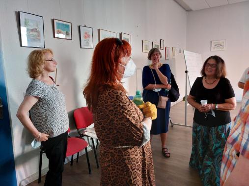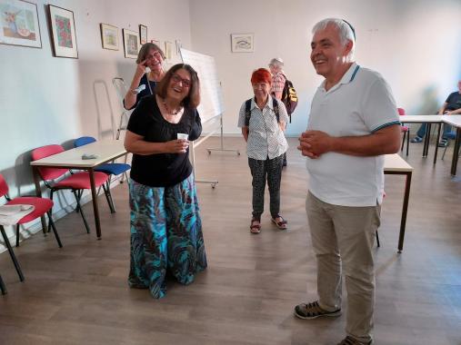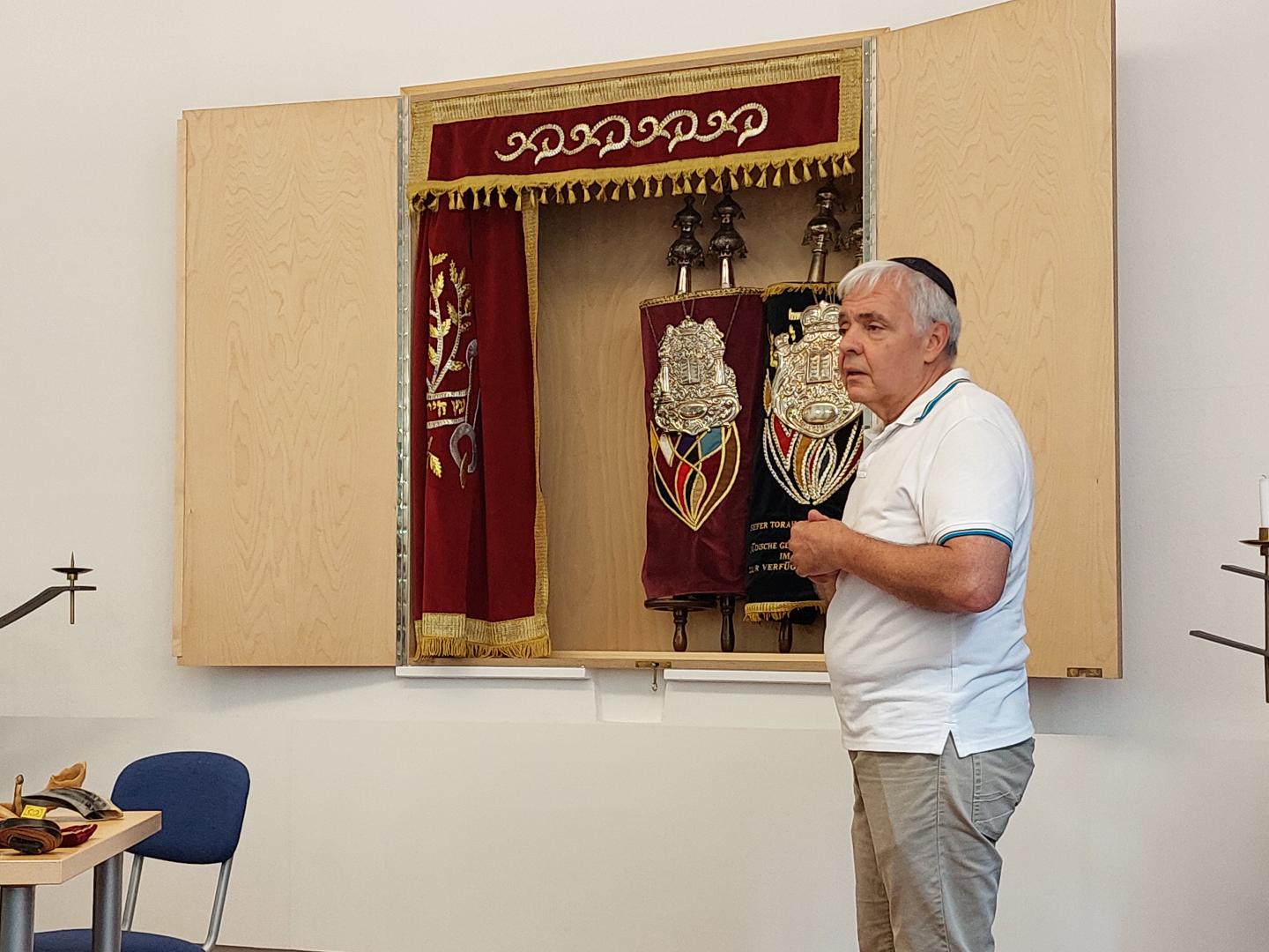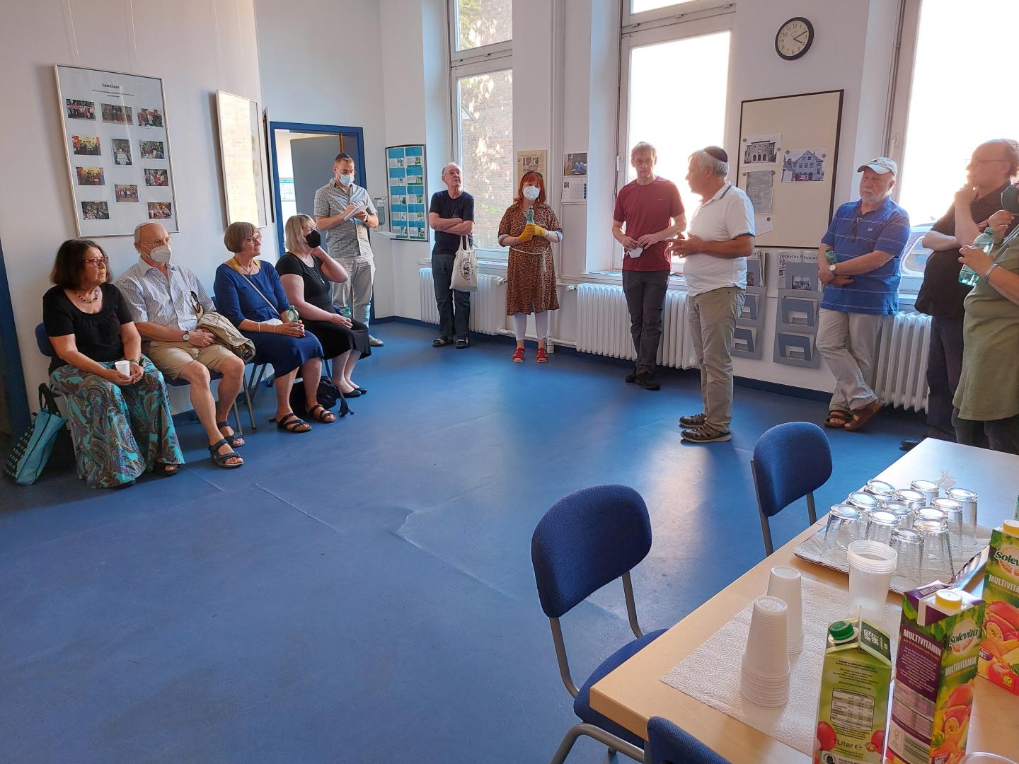 Zu Beginn führten Herr und Frau Trojman durch die Räumlichkeiten der Jüdischen Gemeinde und berichteten über das Jüdische Leben in Delmenhorst. Die Gemeinde in Delmenhorst habe 160 Mitglieder und sei damit eine der kleinsten Gemeinden im Bremer Umland. Beinahe alle Mitglieder seien sowjetischer Herkunft, in den 1990ern seien die meisten von ihnen als Kontingentflüchtlinge nach Deutschland gekommen.