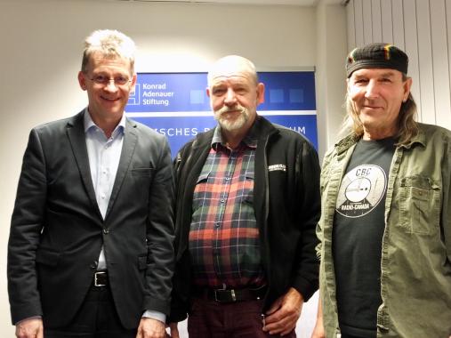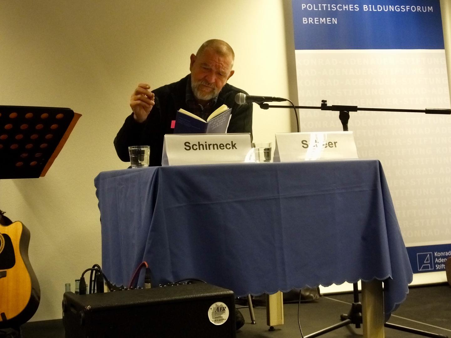 „Wir haben immer eine Wahl, und sei's, uns denen nicht zu beugen, die sie uns nahmen.“ Mit dem Vers des Dichters Reiner Kunze leitete Ralf Altenhof in den Abend ein. Kunzes Gedichte gingen in der DDR von Hand zu Hand, er erhielt über dreißig große internationale Preise. Doch in der DDR wurden seine Gedichte verboten. Die Stasi versammelte 3.500 Seiten in der Stasi-Akte zu dem Dichter, unter dem Decknamen „Lyrik“. Altenhof stellte dem Publikum Udo Scheer, Gründungsmitglied des oppositionellen, 1975 verbotenen Arbeitskreises Literatur und Lyrik in Jena, sowie Liedermacher Andreas Schirneck, später Duo-Partner von DDR-Rocklegende Klaus Renft, vor.