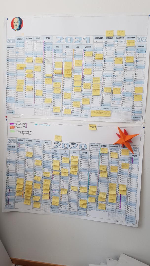 Montags um 10 Uhr war immer unsere Teambesprechung. Anfangs fand diese im Büro von Herrn Altenhof statt, später sind wir aufgrund der Corona-Situation auf eine Online-Variante umgestiegen.
