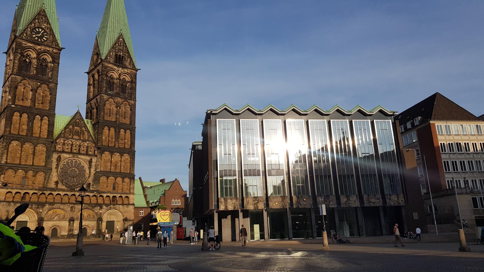 Für mich war es ein Privileg, direkt in der Stadt zu arbeiten. Jede Pause verbrachte ich draußen, egal bei welchem Wetter. Meistens saß ich mit den Praktikanten und Praktikantinnen am Rathaus vor der Bremischen Bürgerschaft; wobei wir auch oft an der Weser spazieren gegangen sind.