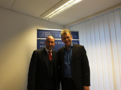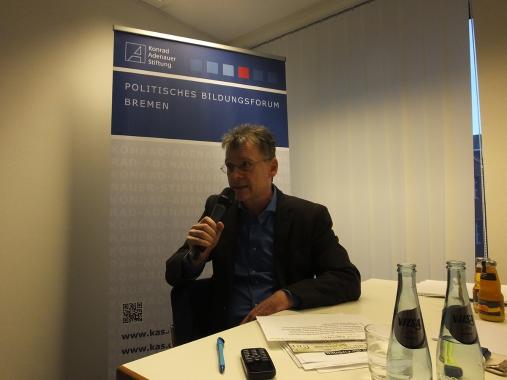 Dr. Ralf Altenhof, Leiter der KAS Bremen, stellte in seiner Einleitung den Zusammenhang zwischen Städtebau und Innerer Sicherheit her. Hierbei warf Altenhof die Frage auf, ob Sicherheit beim Städtebau mitbedacht werden würde. Altenhof verwies darauf, dass es in Bremen wegen der fehlenden Einigung des rot-grünen Senats kein neues Polizeigesetz mit verbesserten Befugnissen geben wird. Auch zumindest ein Testlauf für die Einführung des Konzepts des Predictive Policing, der vorausschaubaren Polizeiarbeit, wurde abgelehnt.