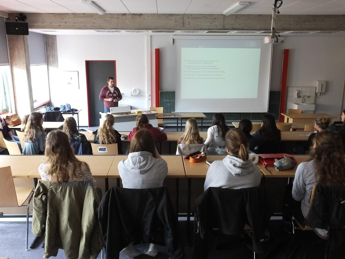 Insgesamt gut 400 Schülerinnen und Schüler aus knapp 30 Kursen an Bremer Schulen (Schulzentrum Grenzstraße, Oberschule am Leibnizplatz, Schulzentrum Walle, Kippenberg Gymnasium, Altes Gymnasium, Oberschule Ronzelenstraße, Ökumenisches Gymnasium zu Bremen, St.-Johannis Schule, Schulzentrum Bördestraße, Freie evangelische Bekenntnisschule) informierten sich bei den Vorträgen über die Studienförderung durch die KAS. Die wissbegierigen Zuhörer stellten den Stipendiaten viele Fragen, insbesondere zu Referenzschreiben, Notendurchschnitt und ehrenamtlichem Engagement.
