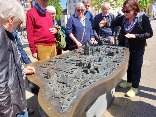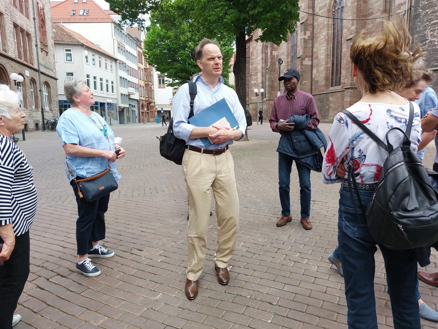 Anschließend ging es für die Reisegruppe nach Göttingen, wo wir uns gemeinsam mit Kempowski-Biograf und einem der besten Kenner von dessen Werk, Dirk Hempel, auf die Spuren von Walter Kempowski begaben. Nach der Haftentlassung holte Kempowski sein Abitur nach und studierte Pädagogik in Göttingen. An der Universität – die Hochschule, wo Kempowski studierte, existiert nicht mehr - sowie einigen weiteren Orten wurde Halt gemacht und Dirk Hempel berichtete von Kempowskis Leben in Göttingen.