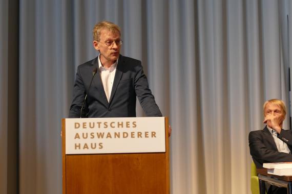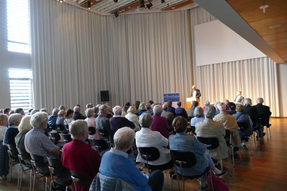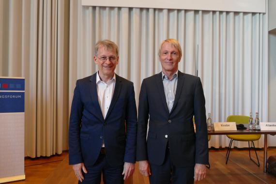 Knabe begann seinen Vortrag ebenfalls mit einer Bezugnahme auf eines dieser DDR-Bücher, „Jenseits der Mauer“ von Katja Hoyer. Die Historikerin, die in der DDR geboren wurde und heute in Großbritannien lebt, erhebt mit ihrer Publikation den Anspruch, eine „neue Geschichte der DDR“ zu liefern. Ähnlich wie Altenhof hielt Knabe den wissenschaftlichen Anspruch Hoyers für nicht erfüllt. Anstatt sich jedoch lange an einem einzelnen Buch abzuarbeiten, interessierte Knabe sich mehr für die Frage, die Altenhof zuvor aufgeworfen hatte. Generell lasse sich eine immer positivere Betrachtung der DDR über die Zeit nicht konstatieren, jedoch gebe es in wellenartigen Bewegungen über die Jahre immer Phasen mit mehr oder mit weniger Interesse an der DDR. Aufgrund der aktuellen Debatte um Bücher wie Hoyers würden wir nun vermutlich erneut eine solche Phase durchleben, so Knabe. In diesem Zusammenhang sprach der Historiker von „bittersüßen Gift der Ostalgie“ und versuchte zu erklären, wie diese entsteht. Anstatt einer rationalen, faktischen Begründung ging Knabe von einer psychologischen Erklärung für die Nostalgie aus. Es sei für die Menschen schwer gewesen, alles, an das man vor 1989 geglaubt habe, nun als falsch zu betrachten und das eigene Weltbild komplett infrage zu stellen. Weitere Gründe sah er in dem Fehlen einer kritischen Aufarbeitung der DDR, vielen DDR-Apologeten in der Bundesrepublik und einer sanften Behandlung der alten DDR-Eliten bei der friedlichen Revolution. Es habe keine so kritische Auseinandersetzung mit der SED-Diktatur wie mit dem NS-Staat gegeben und es wurden auch keine Symbole der DDR verboten, sodass es schnell zu einem teilweisen Vergessen der Staatsverbrechen kommen konnte.