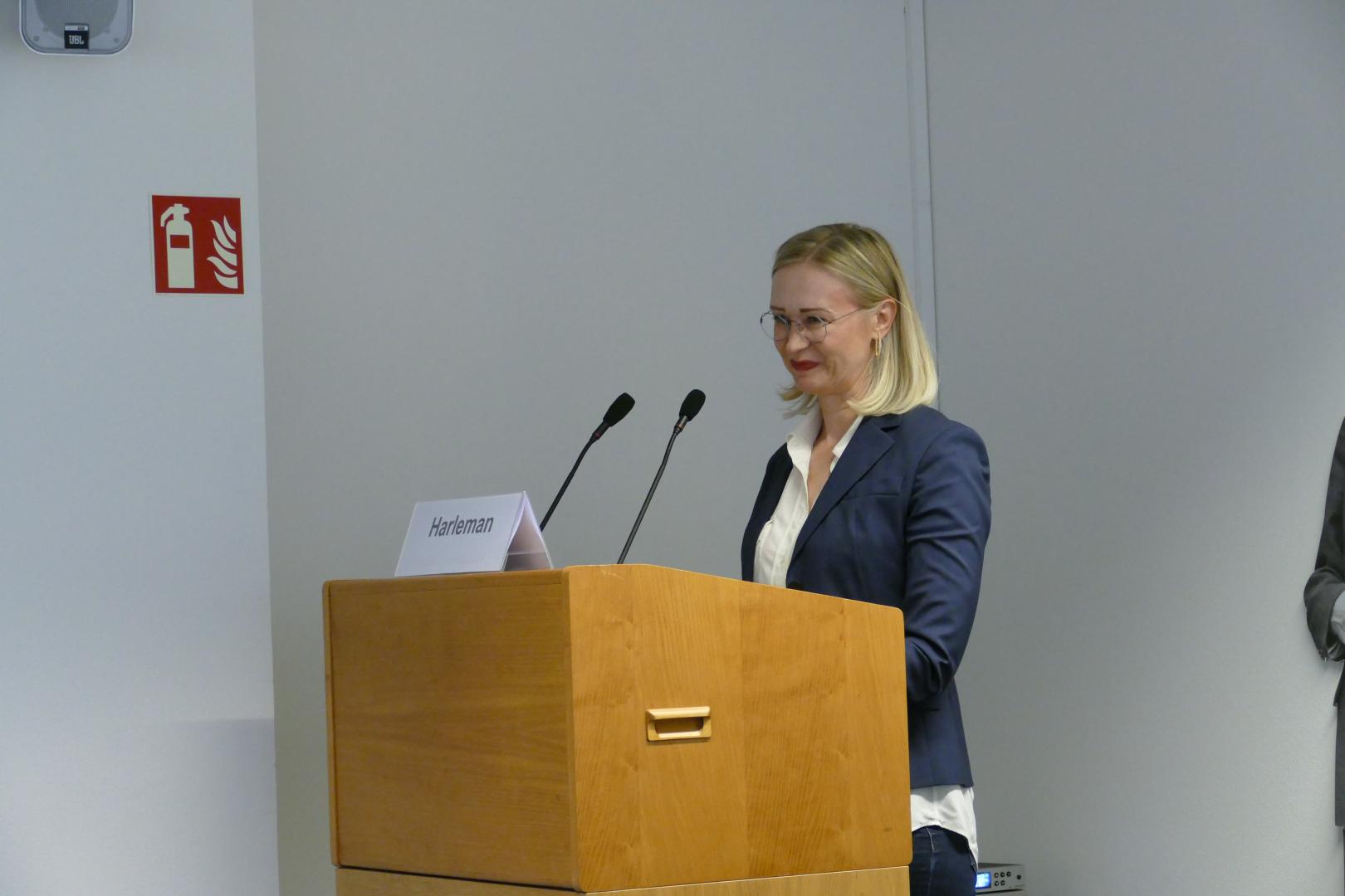 Im letzten Teil des Abends rezitierte Tim Lee erneut Erlebnisse von Inhaftierten, bevor Elena Harleman das Schlussplädoyer, welches von der Bundesvorsitzenden von Razam Yuliya Salauyova verfasst wurde, verlas: Razam bedankte sich bei der KAS für die Solidarität, die sie in Bremen erleben und die Aufnahme von politisch Geflüchteten. Weiter hat Razam das Ziel, ein belarusisches Haus in Bremen zu eröffnen.