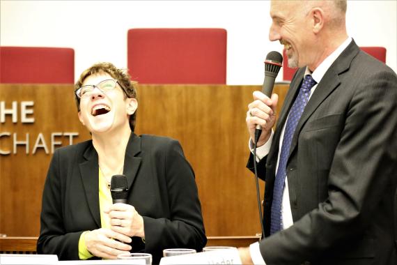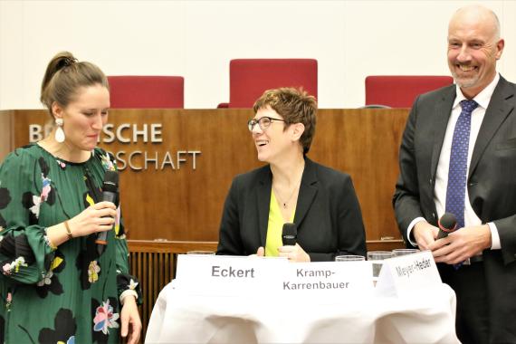 Die von Svea Eckert, Journalistin und KAS-Altstipendiatin, moderierte Diskussion um die Chancen innovativer Politik deckte mehrere Themenfelder ab. So betitelte Meyer-Heder die Verkehrssituation in Bremen als riesiges Thema. Er forderte beispielsweise ein vernünftiges landesübergreifendes Baustellenmanagement. Kramp-Karrenbauer fügte hinzu, dass Fahrverbote nur da eingerichtet werden sollten, wo sie unvermeidlich seien. Das Thema Bildung in Bremen stellte für Meyer-Heder die größte Baustelle dar. Die Bildung müsse nachhaltig verbessert werden, das dürfe allerdings nicht einfach nur gesagt werden, sondern hierbei müsse man tatsächlich endlich in die Umsetzung kommen, forderte Meyer-Heder.