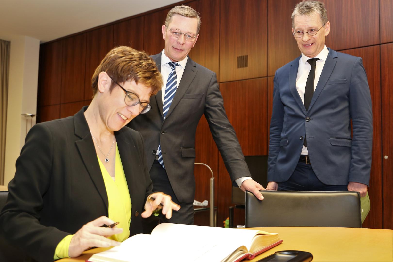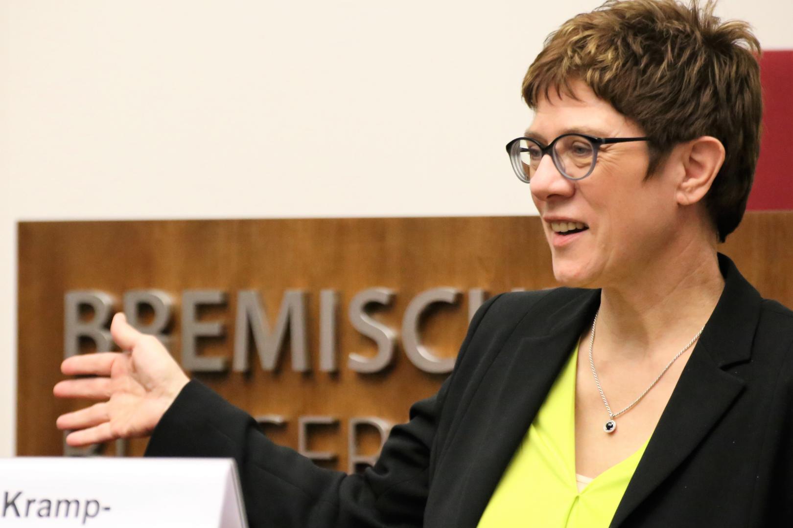 Annegret Kramp-Karrenbauer nutzte ihren ersten Auftritt im Bremer Landesparlament auch, um bundespolitische Themen aufzugreifen. So definiere sich beispielsweise gute Umweltpolitik einerseits natürlich durch guten Umweltschutz, aber auf der anderen Seite müsse es der Wirtschaft dabei weiterhin gut gehen. Die Klimaschutzziele sollten zwar erreicht werden, dies dürfe aber nicht mit einer „Ausradierung der Industrie“ einhergehen. Die CDU solle sich in diesem Themenkomplex nicht vor der Diskussion scheuen, sondern die Thematik aufgreifen. Das Agieren Meyer-Heders in den sozialen Netzwerken werde in Berlin genau beobachtet, sagte Kramp-Karrenbauer. Es deute auf einen Neuanfang in der Hansestadt und sei ein gutes Beispiel für Innovation in der Politik.