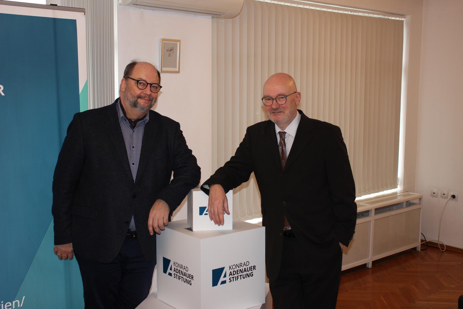 Dr. Christopher Beckmann, Referent Publikationen/Bibliothek in der KAS-Zentrale, war vom 25. bis 28. Januar zu einem Besuch in Sofia. Er war Referent auf einer Veranstaltung des Stipendiatenklubs der KAS, die vom Leiter des Medienprogramms SOE der KAS, Hendrik Sittig, eröffnet wurde. Thema seines Vortrags und waren Leben und Erbe Konrad Adenauers. Dr. Beckmann traf sich darüber hinaus mit der Leitung des Bulgarischen Staatsarchivs und der Nationalbibliothek zu einem Meinungs- und Informationsaustausch und machte sich vor Ort mit der Tätigkeit der KAS Sofia vertraut.