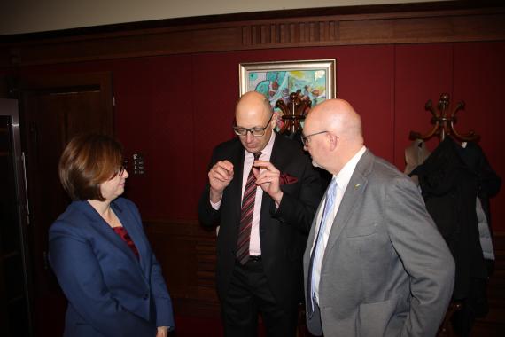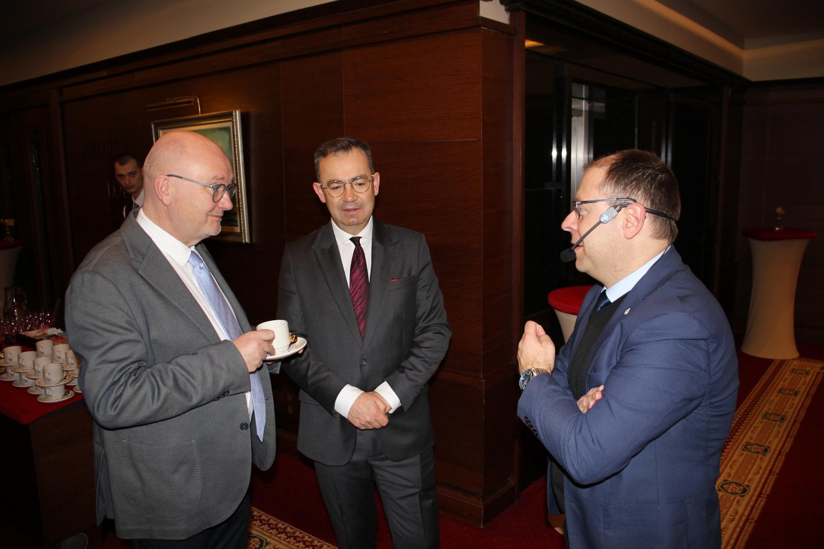 Die stellv. ukrainische Botschafterin Anna Tertitschna im Gespräch mit Jordan Boschilow, Vorsitzender des Sofioter Sicherheitsforums und Norbert Beckmann-Dierkes, Leiter der KAS Sofia