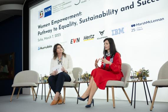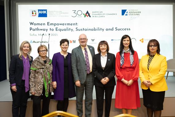 Am 7. März 2025 fand in Zusammenarbeit mit der DBIHK und der Amerikanischen Handelskammer in Bulgarien eine Veranstaltung zum Internationalen Frauentag „ Women’s Еmpowerment: a Pathway to Equality, Sustainability and Success” statt, die über 200 Teilnehmerinnen versammelte. Referenten waren u.a. Doris Pack, Präsidentin der Frauenvereinigung der EVP, die ehemalige bulgarische EU-Kommissarin Maria Gabriel, Christina de Bruin, Vertreterin von UNICEF in Bulgarien, die finnische Botschafterin Kirsti Pohjanukka und Anna-Maria Halatschewa von INSAIT. Grußworte sprachen die deutsche Botschafterin Irene Plank, die Geschäftsführerin der DBIHK Sonja Miekley und Stanislawa Tanewa, Vizepräsidentin der Amerikanischen Handelskammer in Bulgarien. Moderatorinnen waren die Mitarbeiterin der KAS Sofia Zlatozara Stoilowa und Tanja Gerginowa von der DBIHK.
