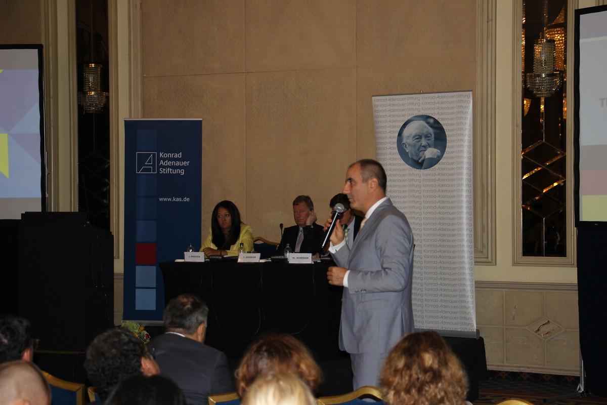In der anschließenden Diskussion meldete sich zunächst der ehemalige bulgarische Außenminister und Partner der KAS, Solomon Passi, zu Wort, der das verschlechterte europäisch-amerikanische Verhältnis ansprach und die Frage an Ministerin Pawlowa richtete, ob Bulgarien während seiner EU-Ratspräsidentschaft eine Verbesserung anstreben werde.
