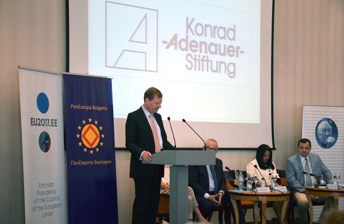 Thorsten Geissler, Leiter des KAS-Landesbüros Bulgarien, sprach über die Herausforderungen der EU-Ratspräsidentschaft Bulgariens und Estlands