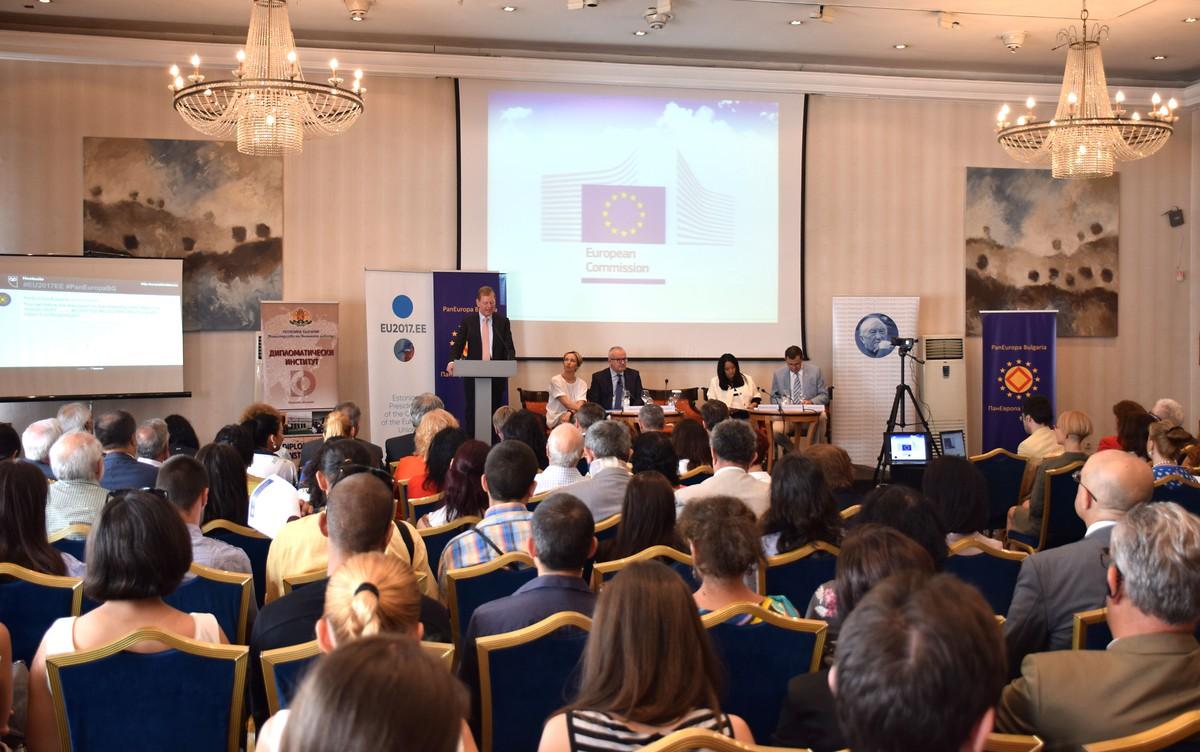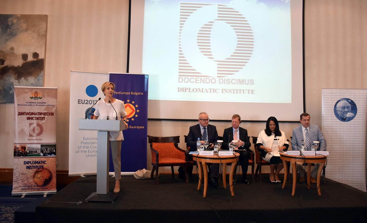 (v. l.) Gergana Passy, Präsidentin "Paneuropa", der estnische Botschafter Ants Frosch, Thorsten Geissler, Leiter des KAS-Landesbüros Bulgarien, Lilyana Pavlova, Ministerin für die EU-Ratspräsidentschaft Bulgariens und Ognian Zlatev, Leiter der Vertretung der EU-Kommission in Bulgarien