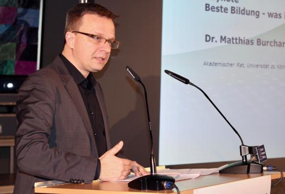 In seiner Keynote geißelte der Bildungsphilosoph Matthias Burchardt aus Köln die postfaktische Scheinwirklichkeit durch Zahlengläubigkeit. Es stimme zwar, dass die Zahl der Abiturienten in NRW um gut 20.000 in den letzten Jahren gestiegen sei und sich die Zahl der 1,0-Abiture verdoppelt habe. Was die Zahlen jedoch nicht verrieten, sei die insgesamt gesunkene Unterrichtsqualität und das niedrigere Anforderungsniveau. In den Schulen finde mehr Sozialreparatur als Unterricht statt. Dadurch würden Ungleichheiten jedoch vielmehr zementiert anstatt aufgehoben. Burchhardt forderte einen Reformstop, eine Rückkehr zum Leistungsprinzip und einen neuen Respekt für die pädagogische Aufgabe und Freiheit der Lehrerschaft. Die ziellose Digitalisierung des Unterrichts bewertete er kritisch. Digitale Kompetenz ersetze analoge Bildung nicht, sondern setze sie umgekehrt voraus.